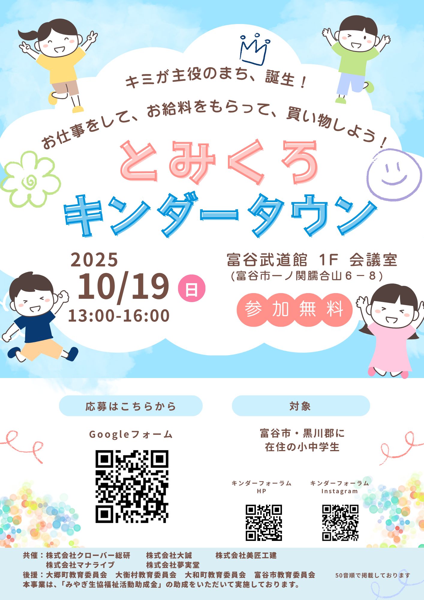 【いろいろなお仕事が体験できる!とみくろキンダータウン開催のお知らせ】